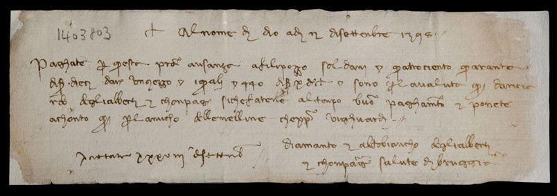 J'ai trouvé un document d'archives de lettres de change, dont une à Barcelone en 1398.. mais le contenu semble différent.