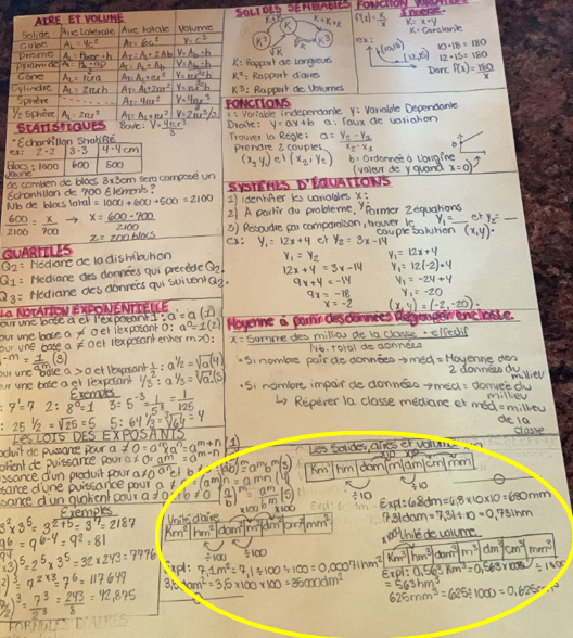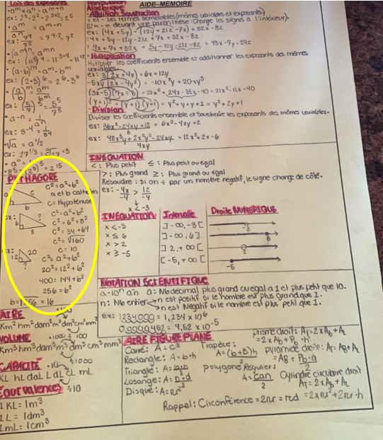Bonjour demain j’ai un examen de fin d’année en maths j’ai fait une feuille aide mémoire et ma prof m’a dit qu’il me manquais la conversion des unités d’aire de volume et capacité. La moyenne pondérer pour les statistiques et le théorème de pythagore svp pouvez vous m’aider à trouver des numéros à mettre dans ma feuille aide mémoire car je n’en trouve pas?