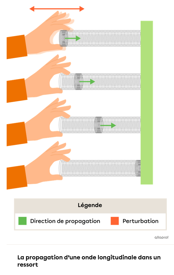 Une onde longitudinale est une onde dont la perturbation du milieu est parallèle à la direction de propagation de l’onde.