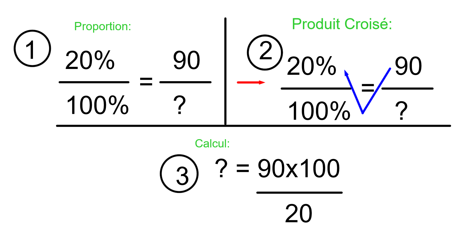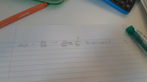 Ton 20 % c'est ( 20 sur 100 ) Et nous voulons savoir le numérateur sur 90 !