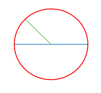 Pour finir, il y a le rayon, qui part du centre du cercle pour aller jusqu'à la circonférence. Il est en vert dans ce dessin.