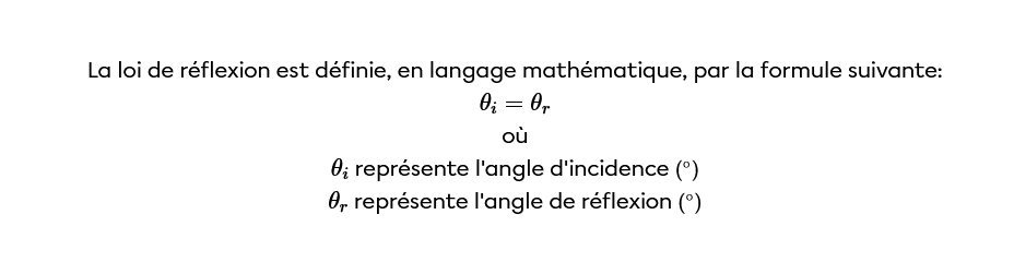Selon la loi de réflexion, l'angle d'incidence et l'angle de réflexion sont égaux.