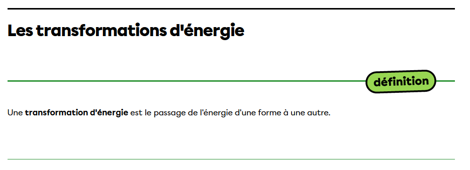 d) Pense aux types d'énergie qui entrent dans la machine et qui en ressortent. Ils seront différents. Consulte cette fiche pour connaitre les types d'énergie et leur transformation.
