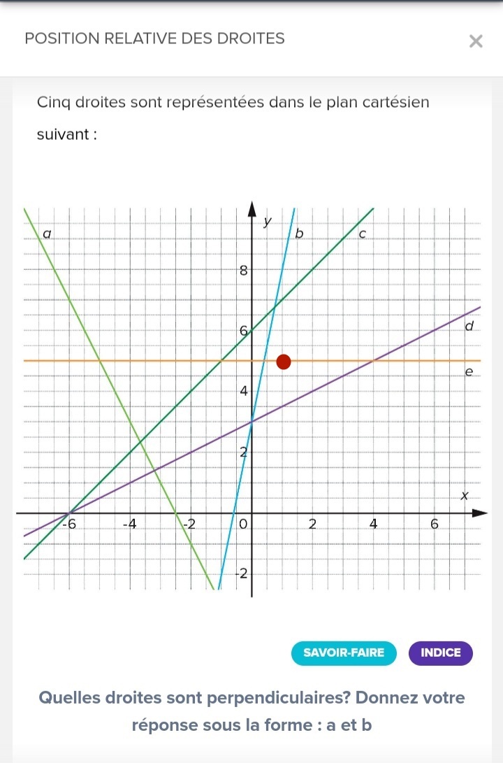 Cependant, grâce au graphique donné, on peut facilement déterminer que les droites bleu et orange ne sont pas perpendiculaires.