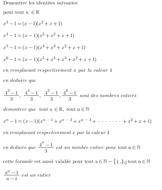 Wow si tu n'as pas fait le raisonnement par récurrence et je ne pense pas que vous le faites en secondaire, il est impossible de démontrer cette hypothèse.