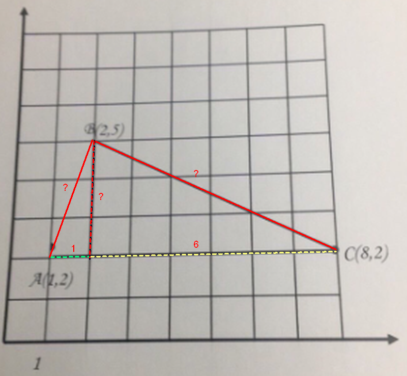 Le côté AC est parallèle à l'axe des x et on le calcule sans formule.