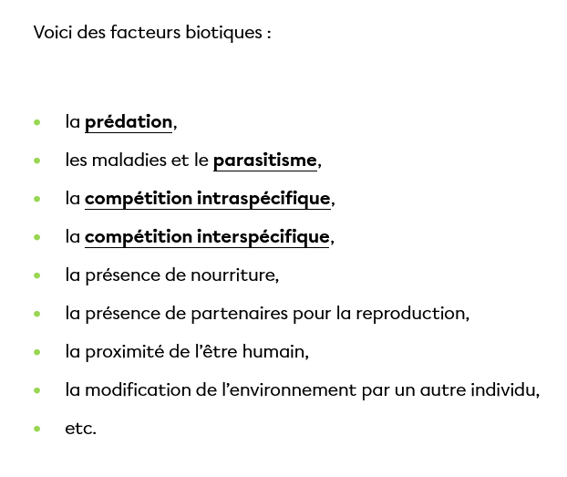 Les facteurs biotiques représentent l’influence des êtres vivants sur d’autres êtres vivants d’un même milieu.
