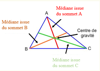 Dans un triangle, une médiane est un segment qui relie un sommet au milieu du côté qui lui est opposé.