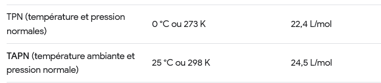 Dans le cas des gaz, les conditions sont souvent TPN ou TAPN.