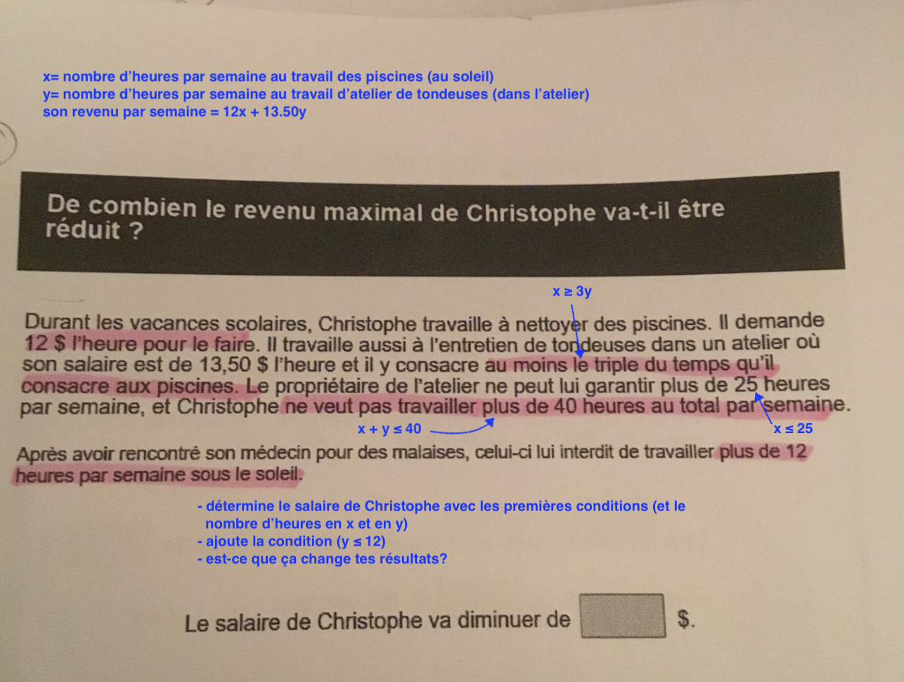 J’applique très bien les étapes d’optimisation mais trouver le salaire que Christophe va diminuer j’ai aucune idée