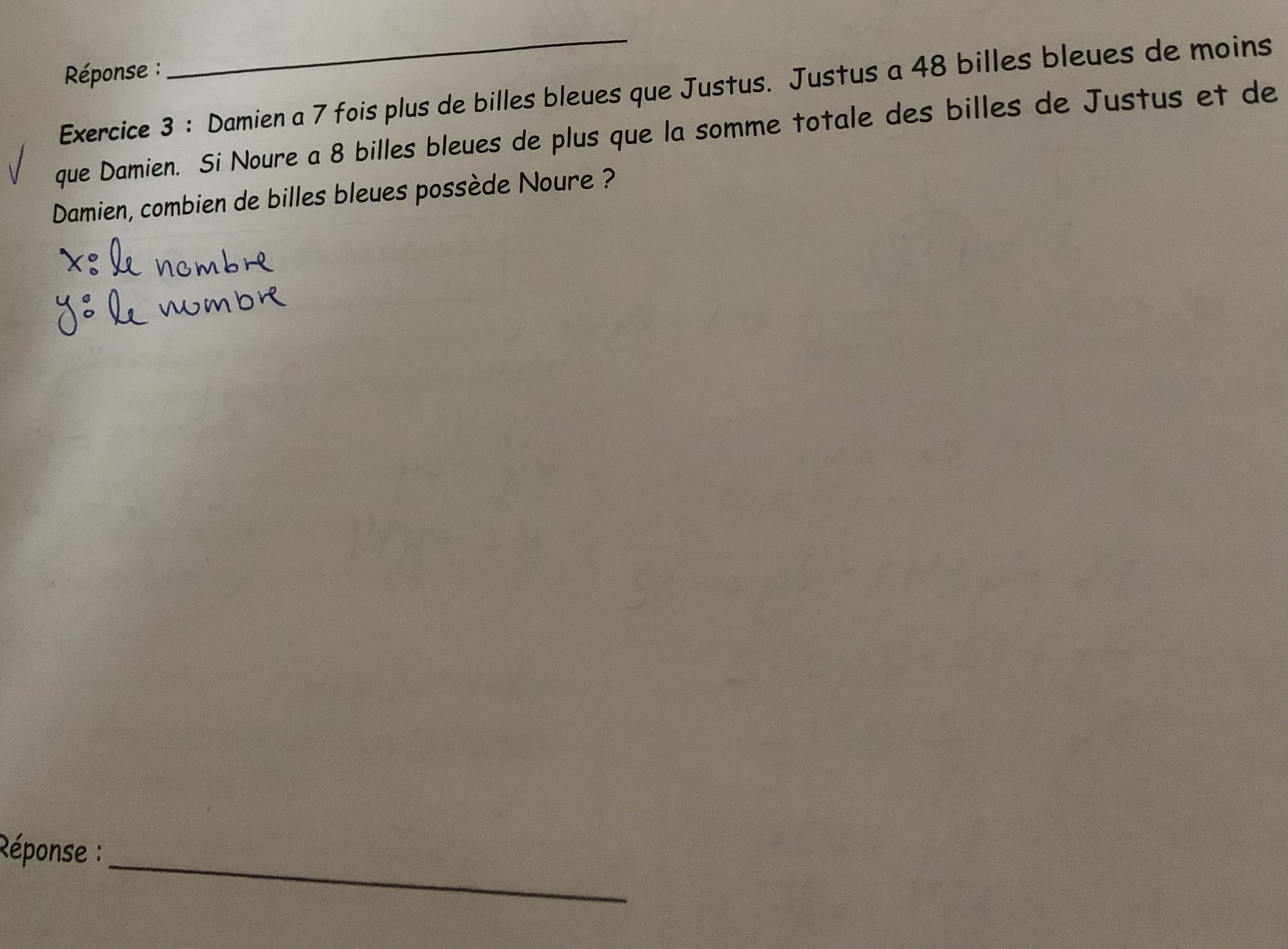 On te dit aussi que Justsus a 48 billes bleues de moins que Damien, ce qui nous donne ceci :