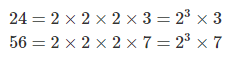 Exemple: cherchons le PPCM et le PGCD de 24 et 56.