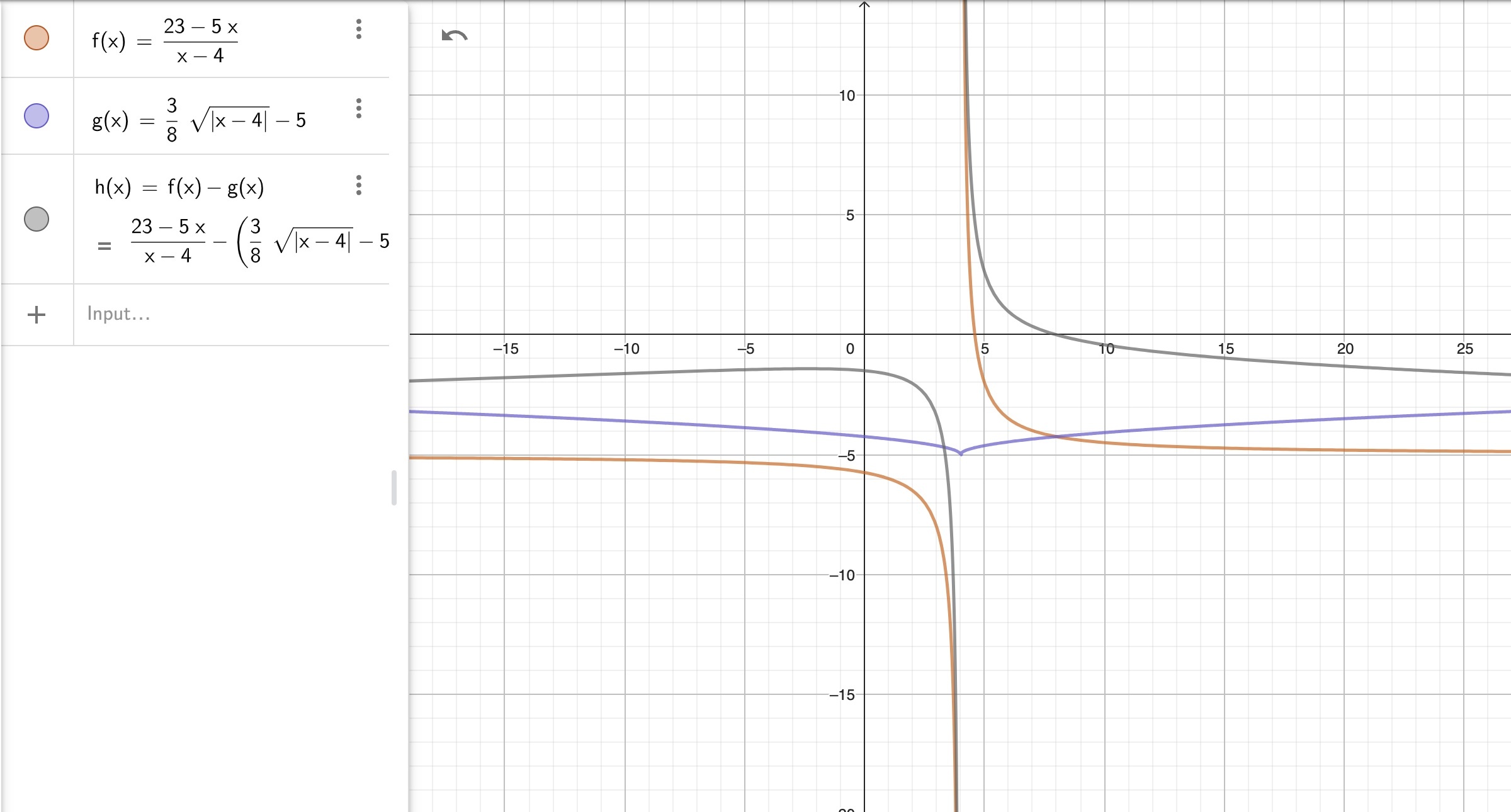 Tu peux voir que le h(x) = f(x) - g(x) est négatif partout sauf pour l'intervalle [4,8]