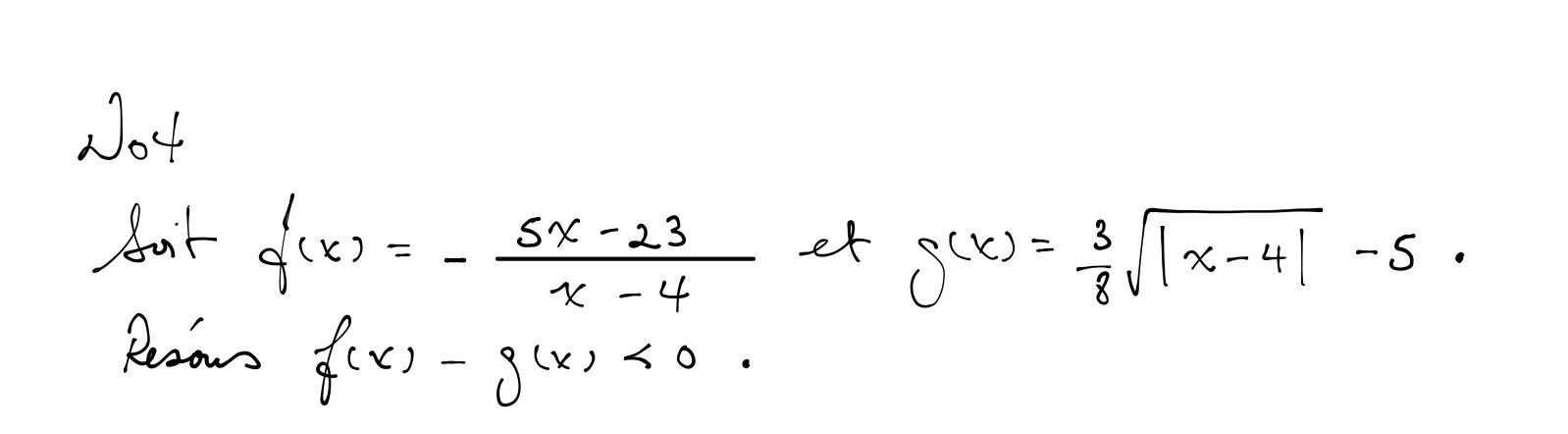 Avec une inéquatIon il faut être prudent, en particulier lorsqu'il y a des variables comme dénominateur car alors il faut considérer le changement de signe de l'inéquation si (x-4) est plus petit ou plus grand que 0.