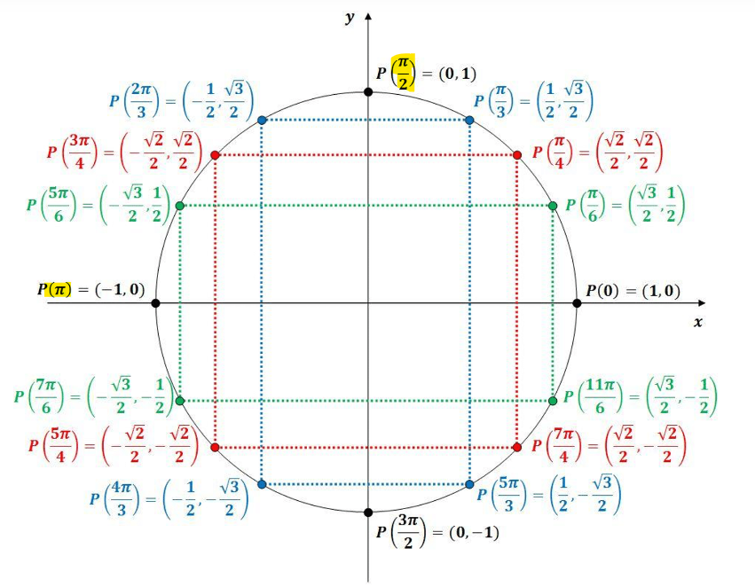 Pour aller de l'angle rouge de 0,761 rad à l'angle orange, tu dois trouver le complément de 0,761 rad dans le second quadrant en soustrayant cet angle de pi :