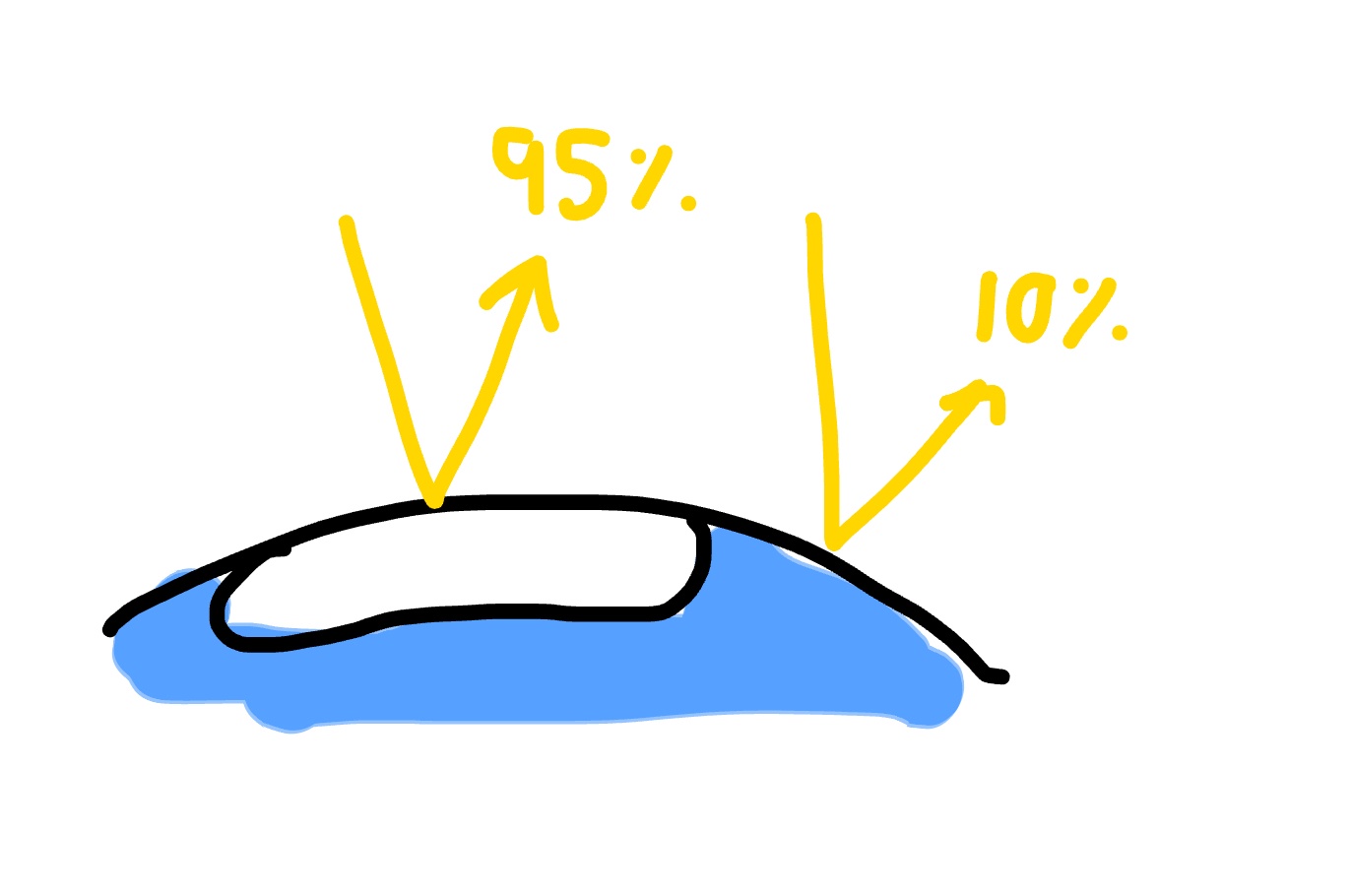 Sur cette image, l’albédo de la glace correspond à 95% et l'eau est à 10%. Cela veut dire que la glacé réfléchit 95% de la lumière reçue (parce que la glace ou la neige est blanche, et cette couleur dévie la lumière). Puis, l'eau réfléchit seulement 10% (encore une fois, même logique, l’eau est foncée et le foncé absorbe la lumière).