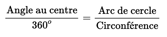 m∠AOB/360°=mAB/C (Mesure de l'angle AOB/360°=mesure de l'arc AB divisé par la circonférence)?