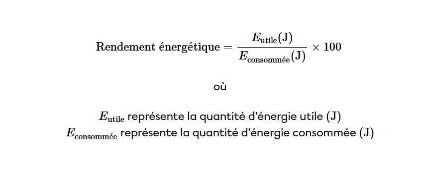 Voici la formule pour pourvoir calculer le rendement énergétique.