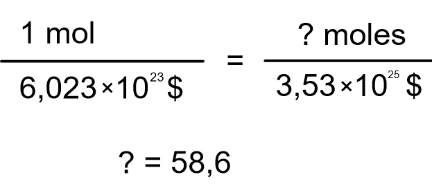 $$\frac{1\;mole}{6,023\times10^{23}} = \frac{?}{Données \; du \; problème}$$