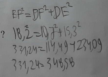Étant donné que l'égalité est fausse (331,24 ≠ 348,58). Donc, le triangle DEF n'est pas rectangle.