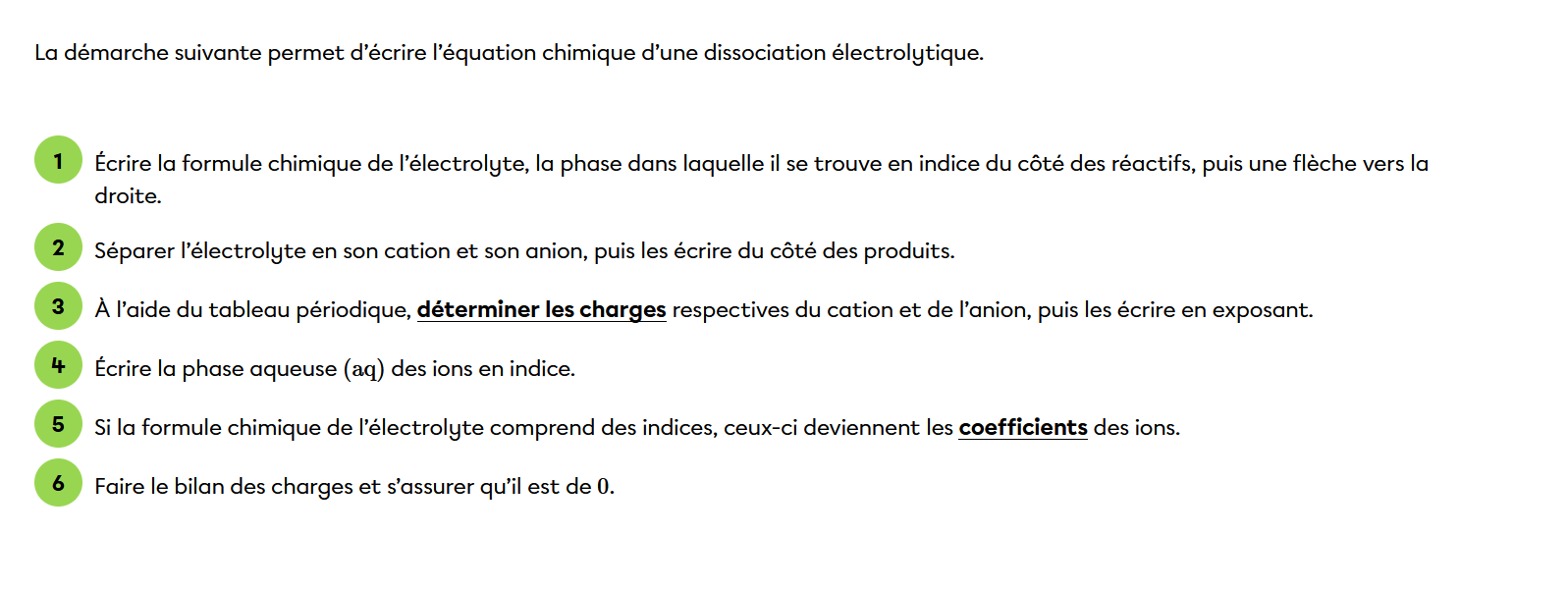 Voici la démarche à faire pour déterminer une équation de dissociation électrolyte.
