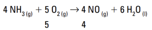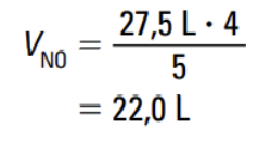 Comme tu peux le voir dans l'image ci-haut, 5 moles de O2 réagissent pour donner 4 moles de NO. Or, 5 moles de O2 correspondent à un volume de 27,5 L (tel qu'il est écrit dans l'énoncé). Il ne reste qu'à calculer un rapport de proportion où le volume de NO produit correspond à 4/5 du volume de O2.
