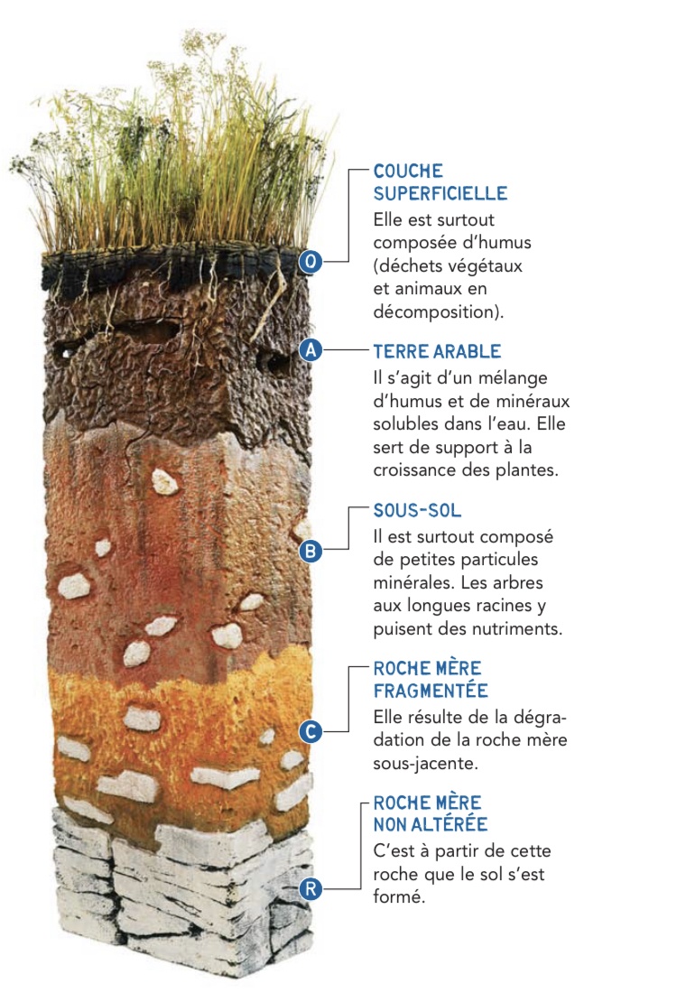 Les horizons du sol sont les différentes couches qui compose un sol. Tu peux en savoir plus en consultant cette fiche d'alloprof :