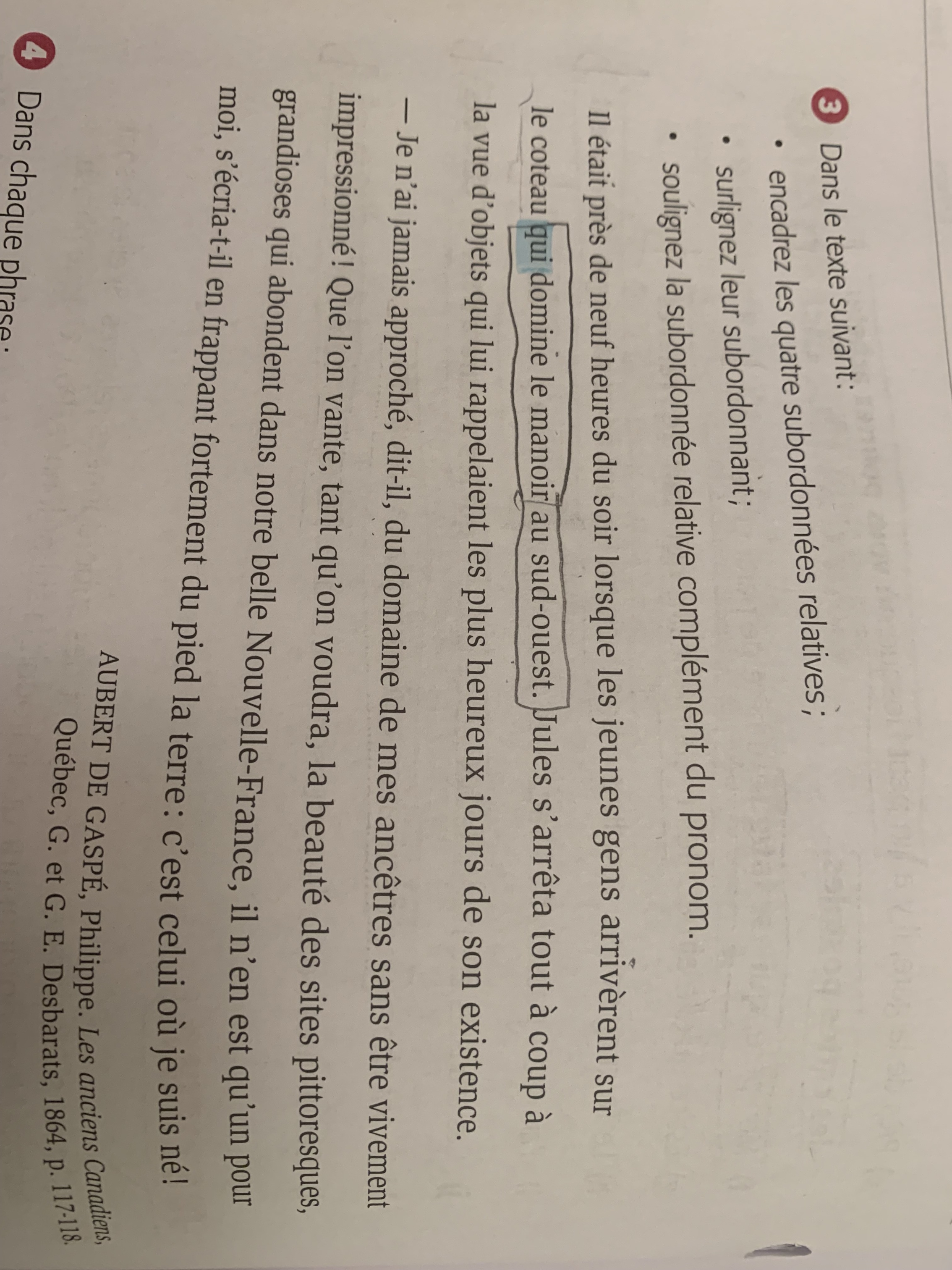 lorsque les jeunes arrivèrent sur le coteau est une subordonnée relative à encadré ?