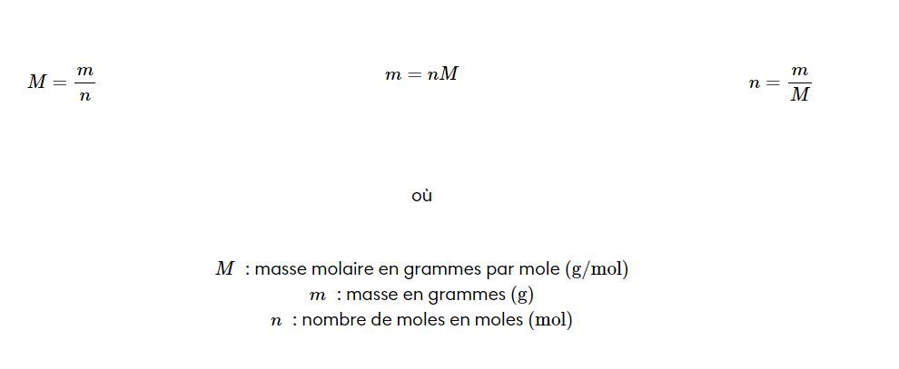 Tu dois d'abord utiliser l'équation suivante pour trouver le nombre de moles :