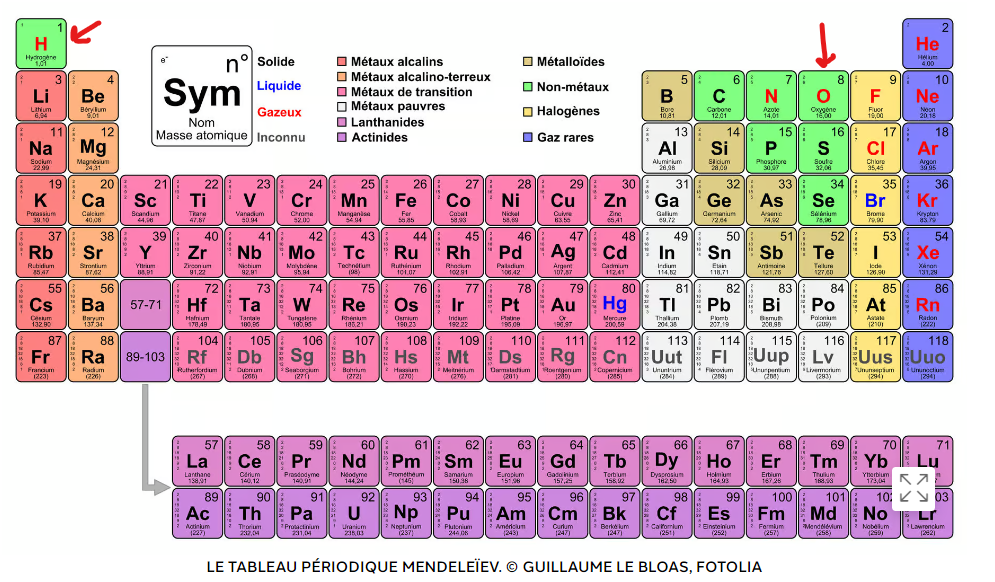 Pour trouver la masse molaire de l'eau, donc de \(H_{2}O\), tu dois te servir de ton tableau périodique :