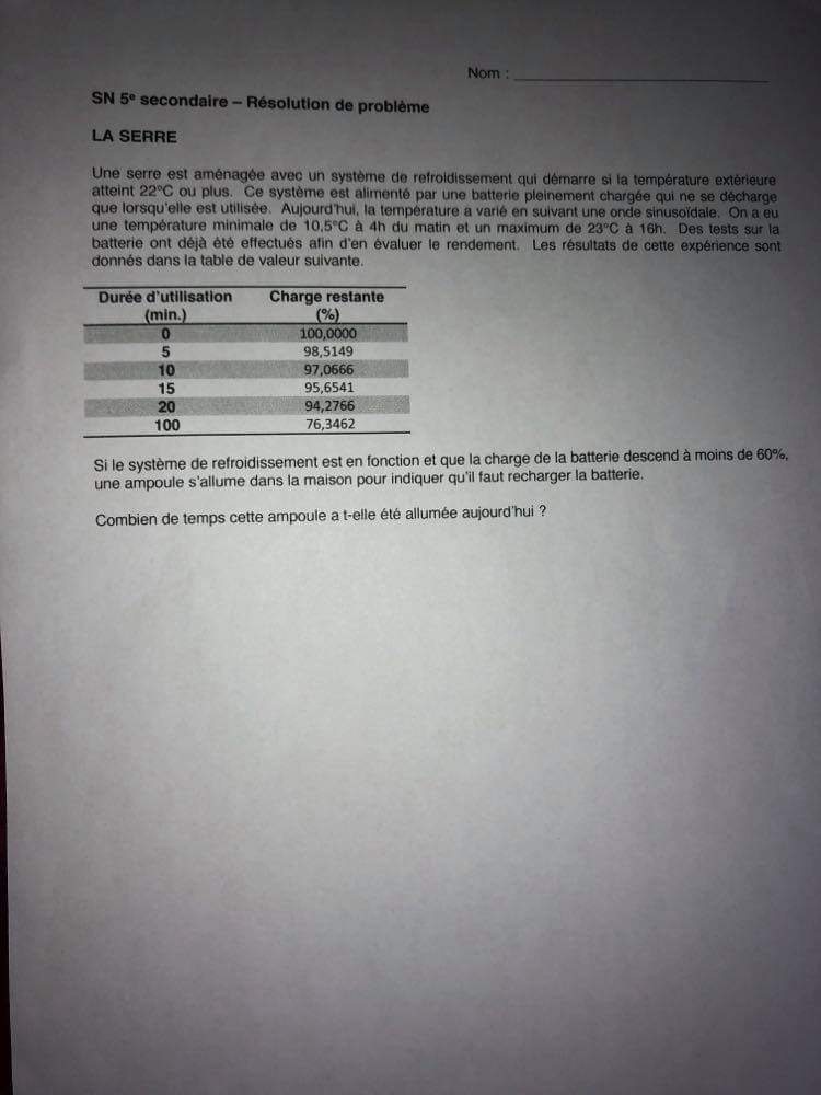 Bref, la température excède 22 °C pendant 18,191-13,809 = 4,382 heures de la journée. Ceci correspond à 4,382 • 60 = 262,92 minutes d'utilisation.