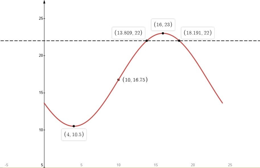 $$ 22 = 6,25 • sin(\frac{\pi}{12}•(x+14)) + 16,75 $$