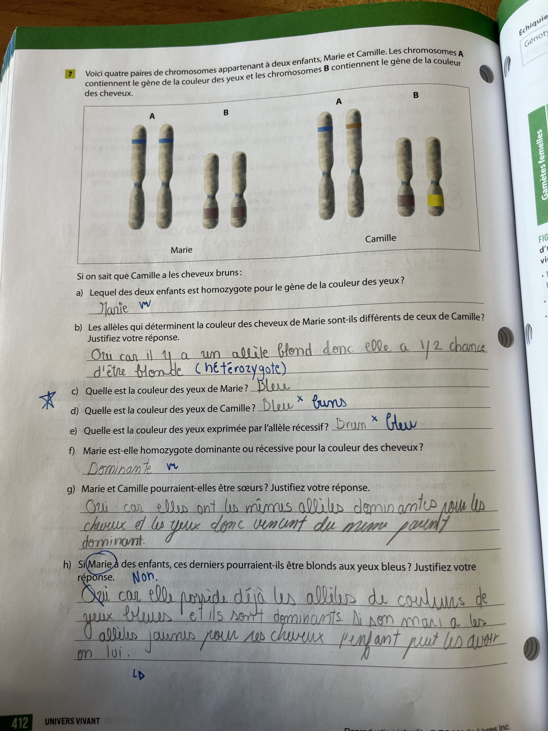 Pour ce qui est du deuxième exercice, souviens-toi de la définition d'un allèle dominant et d'un allèle récessif: