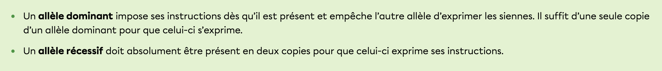 Ainsi, si la caractéristique est issue d'un seul allèle (le deuxième allèle est différent), c'est qu'il s'agit d'un allèle dominant!