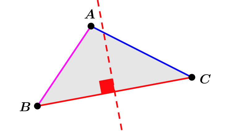 Comme tu peux le voir, notre médiatrice traverse le côté BC à angle droit et en son point milieu.