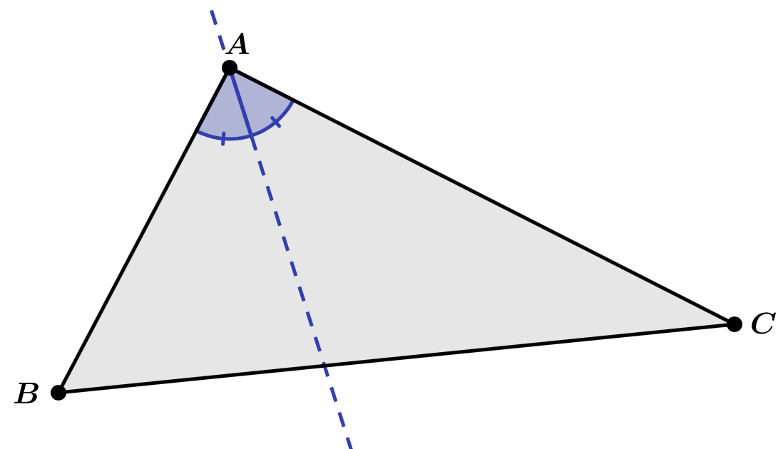 La bissectrice coupe ici l'angle A, et comme les petites lignes sur l'angle l'indiquent, les 2 angles créés par la coupure sont isométrique.