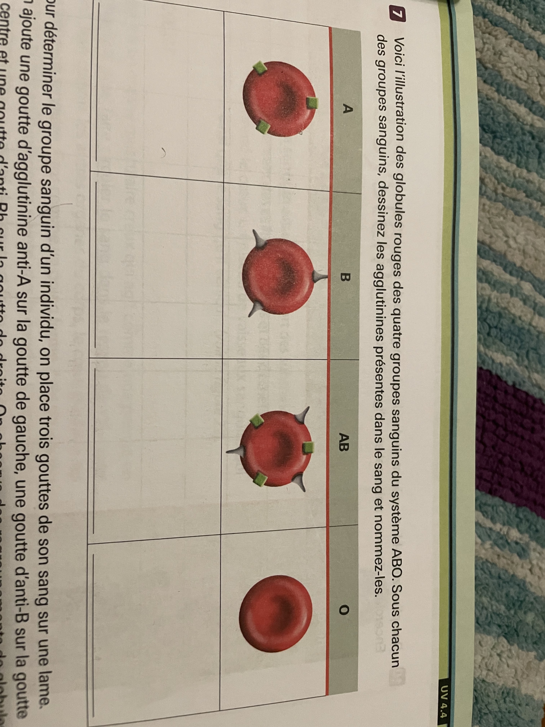 Dans ce problème, tu dois dessiner les agglutinines présentes dans le sang selon le groupe sanguin.