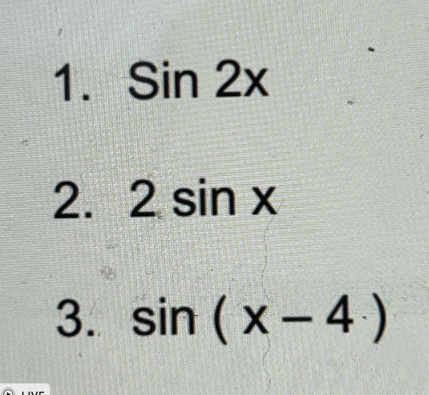 Au numéro 1, on cherche la valeur de x pour laquelle f(x)=sin(2x)=0.