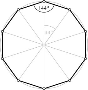 Un décagone est un polygone à 10 sommets, donc 10 côtés et 35 diagonales. La somme des angles internes d'un décagone non croisé vaut 1 440°. Un décagone régulier est un décagone dont les dix côtés ont la même longueur et dont les angles internes ont même mesure. Il y en a deux : un étoilé et un convexe