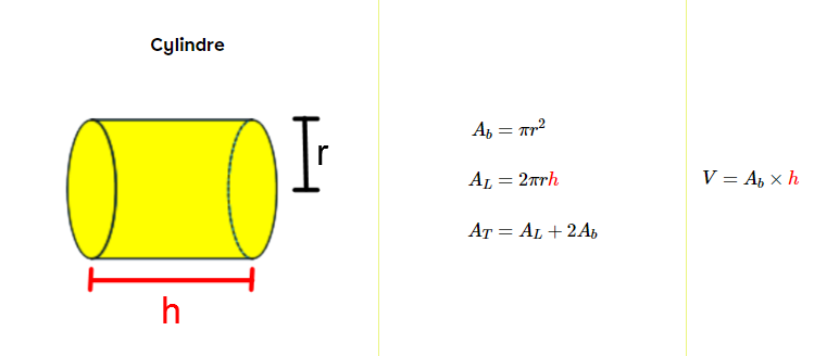 Voici une fiche de notre site qui te présente les autres formules de volume si tu en as besoin :