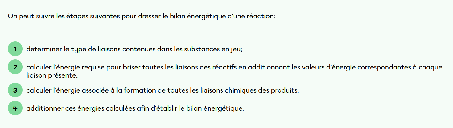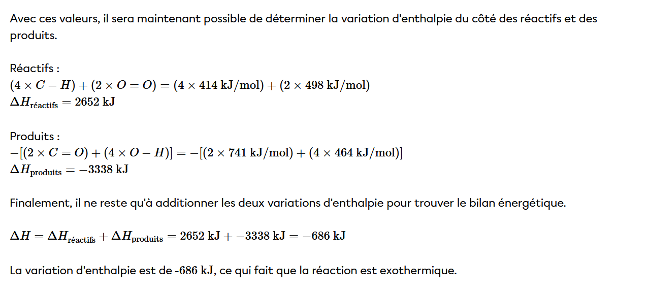 Pour calculer le bilan énergétique d'une réaction, il faut utiliser la formule suivante.