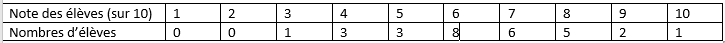 3 (1 élève a eu 3), 4,4,4 (3 élèves ont eu 4) ,5,5,5 (3 élèves ont eu 5), etc.