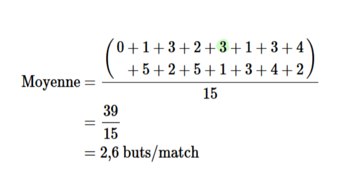 Prenons comme exemple la moyenne suivante.