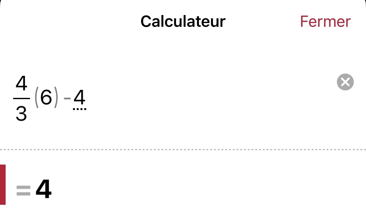 Le résultat est une fonction, notée f'(x), qui donne l'accélération instantanée en fonction du temps x! Il ne restera plus qu'à calculer f'(6), donc remplacer x par 6 dans notre règle \(f'(x)=\frac{4}{3}x-4\), afin de trouver l'accélération instantanée à x=6 sec