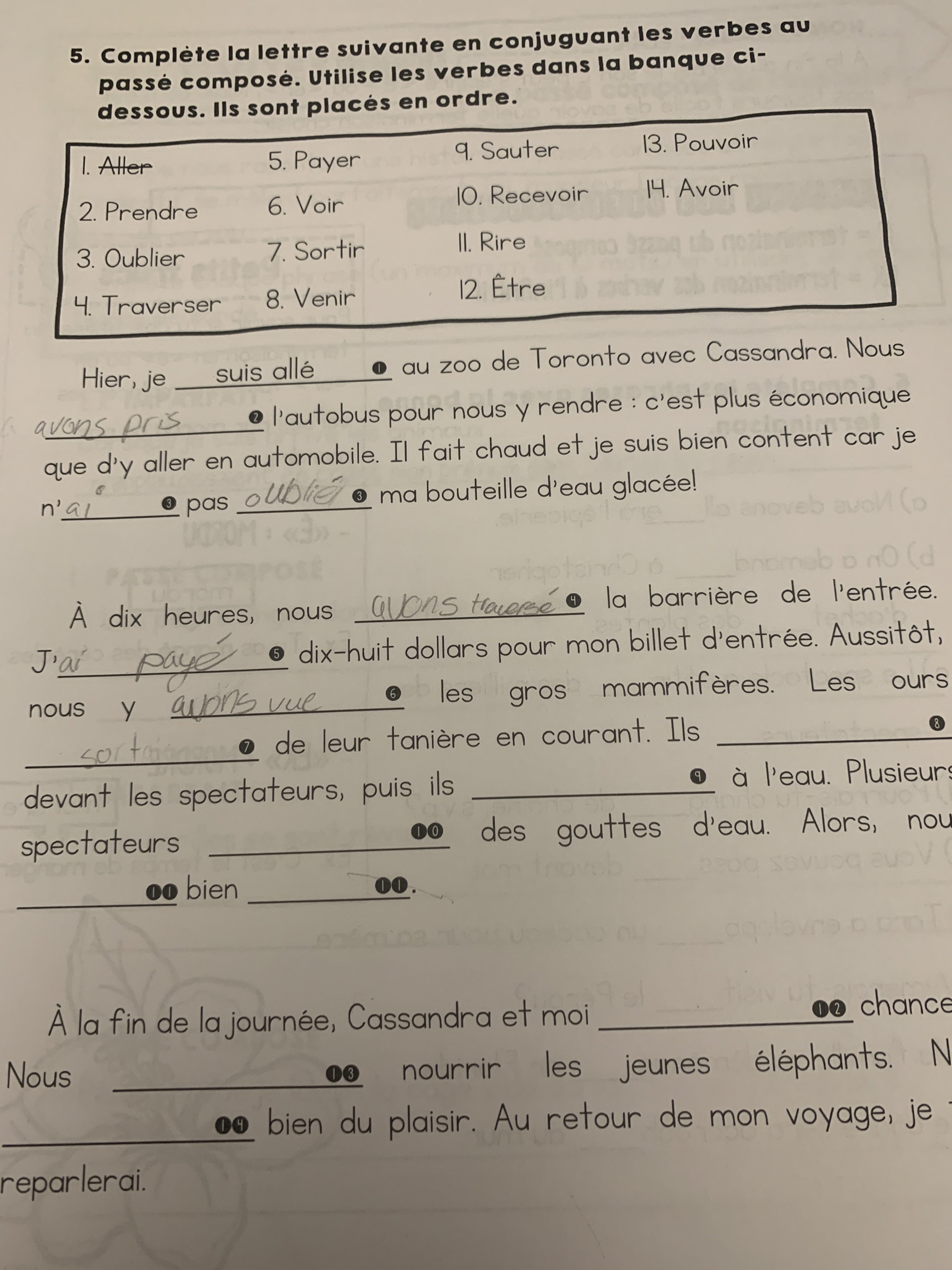Exemple: Aller: être aller: je suis allé, tu es allé