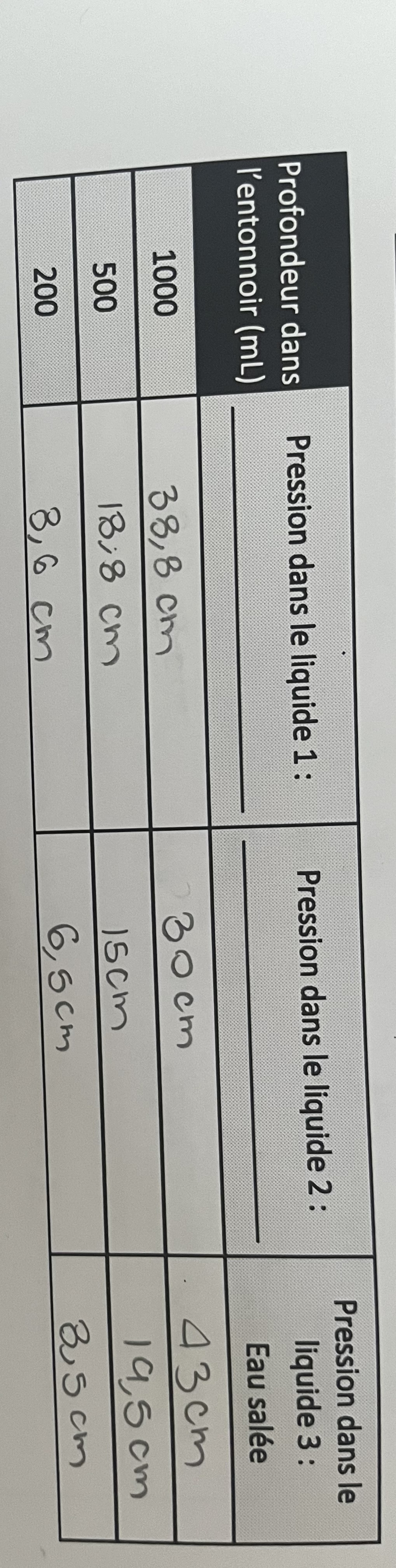 Salut est-ce que le titre suivant conviendrait parfaitement au tableau de donnée : la pression des liquides selon la profondeur dans l’entonnoir ?