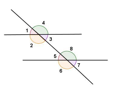 Pour ce qui est des angles correspondants, ils n'ont pas le même sommet, mais sont situés du même côté d'une droite sécante, l'un à l'intérieur et l'autre à l'extérieur de deux droites coupées par cette sécante.