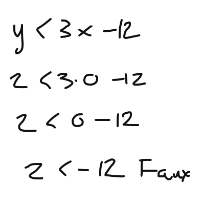 On prend un point quelconque dans la zone hachurée, un point facile à calculer, soit (0,2).