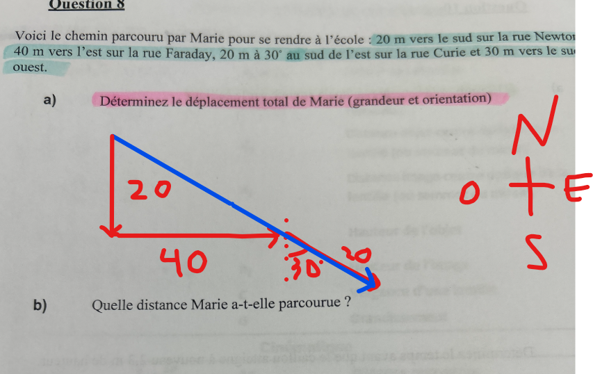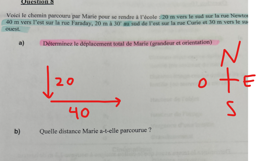 Le chemin parcouru par Marie est le suivant : 20 m vers le sud
