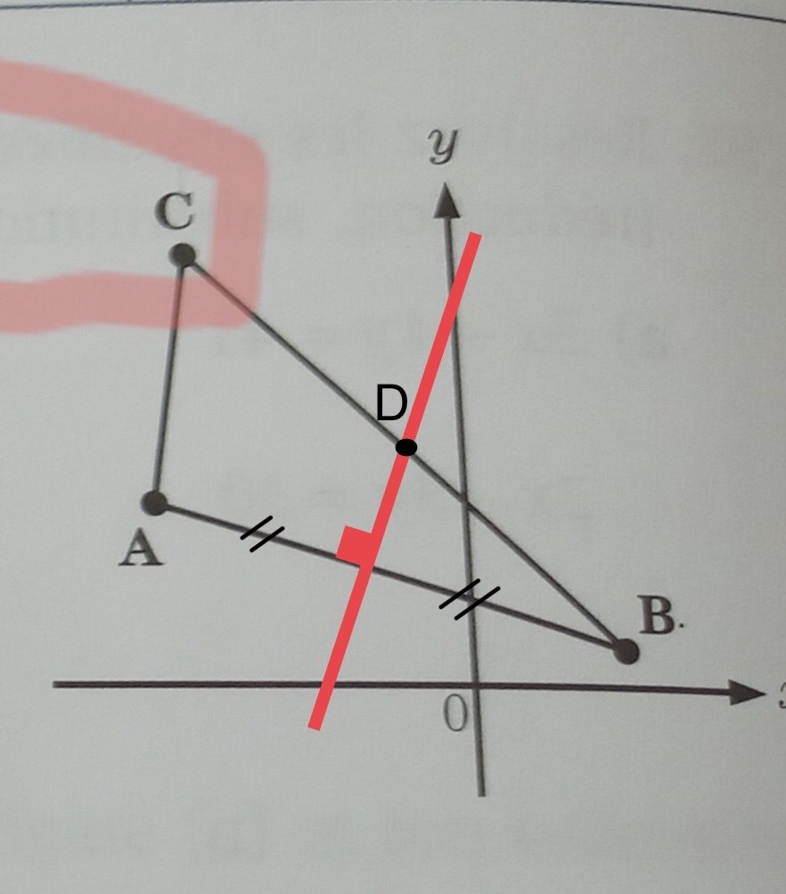 Une médiatrice est une droite perpendiculaire à un segment qui passe par le milieu de ce même segment. Ainsi, la médiatrice de la droite AB passe par le milieu de celle-ci, forme un angle droit et rencontre la droite CB au point D, comme illustré sur le schéma ci-dessous :